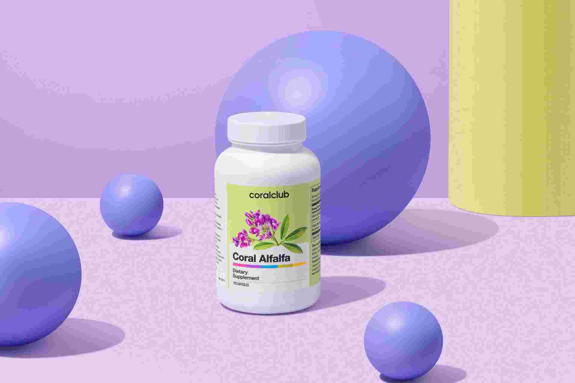 Coral Alfalfa conţine suc concentrat din frunze de lucernă, accelerând semnificativ acţiunea pozitivă asupra organismului pentru stimularea activității sistemului digestiv și facilitarea eliminării reziduurilor metabolice. Sursă de importante substanțe biologic active, precum izoflavone, vitamina K, clorofila, fluor este benefică pentru persoanele cu sănătatea fragilă, care suferă de dereglări de digestie, intoxicaţii, pentru activitatea renală şi ulcere.